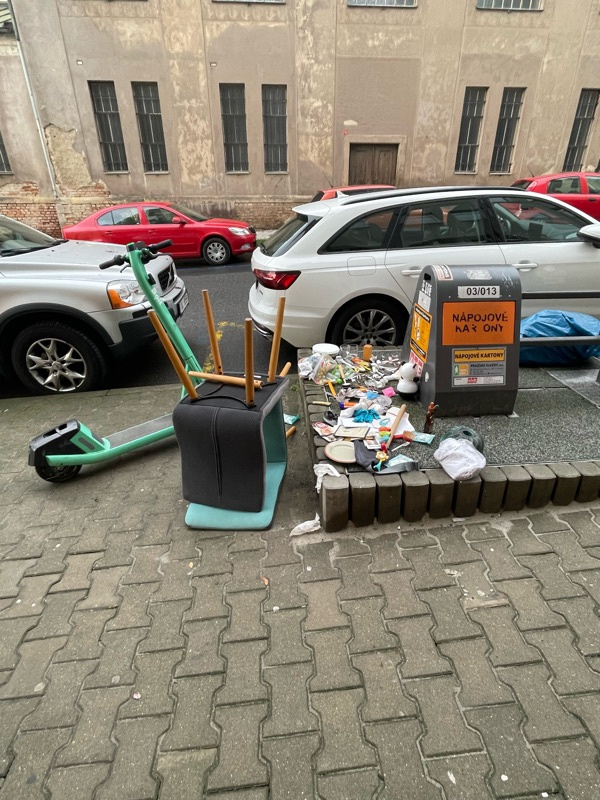 V ulici Jeseniova 52 naproti kostelu Pravoslavné církve je u tříděného odpadu bordel.