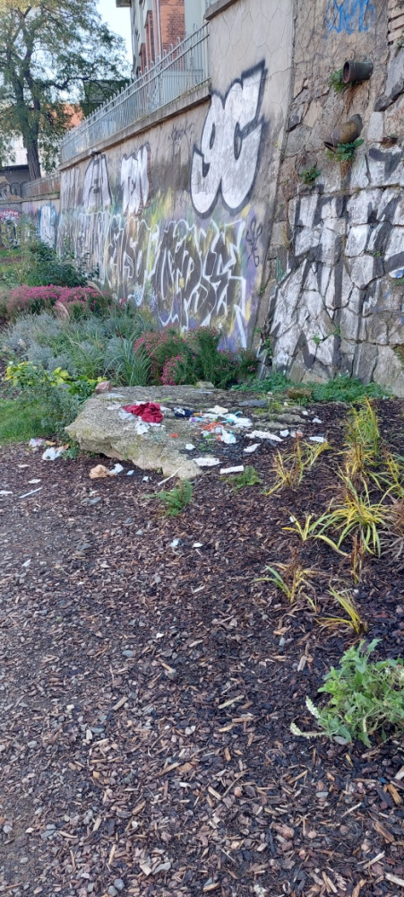 rozhozene odpadky, sklo, jidlo