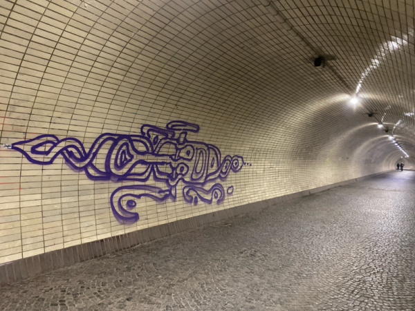 V Žižkovském tunelu pro pěší se opět objevují sprejerské tagy.