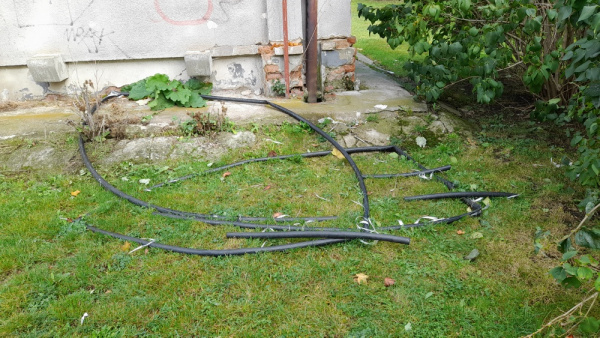 Hollarovo náměstí - zbytky z barelů za jedním z domků