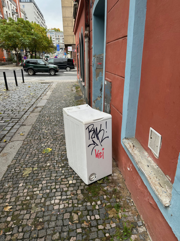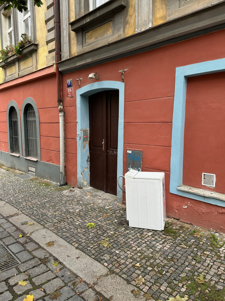 1. kdosi odložil starou pračku před naším domem. Jako starosta bytového družstva jsem se zeptal všech spolubydlících, jestli to někoho není, ale není. Tak Vás chci poprosit o odstranění