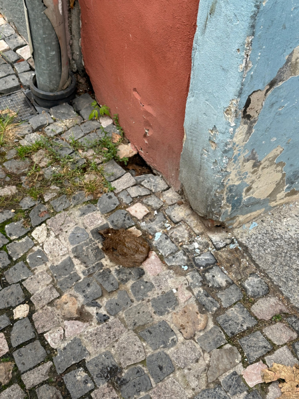 2. Hned vedle pračky, u dveří do domu, je exkrement (snad psí).