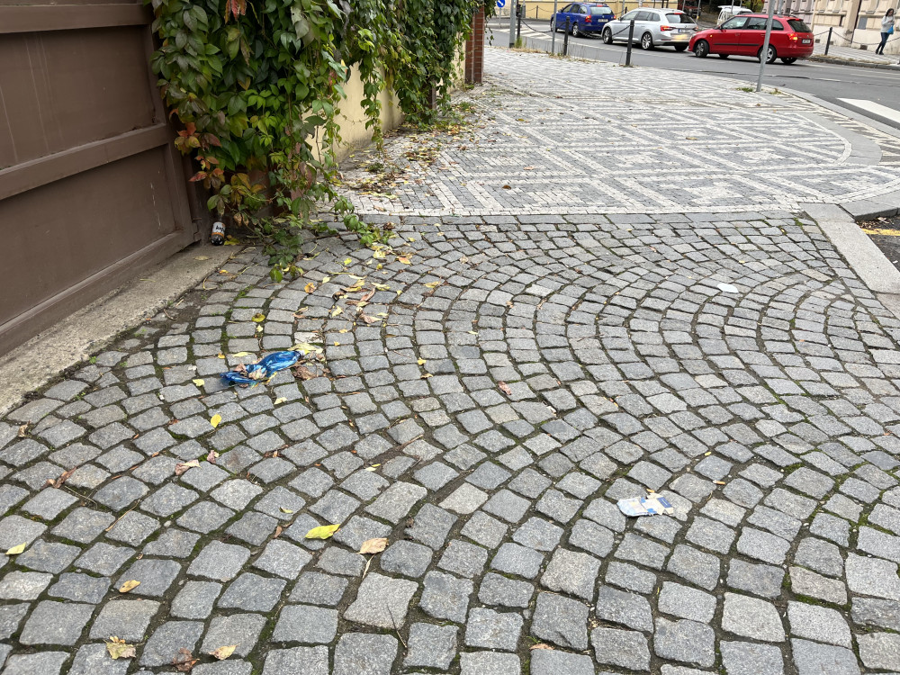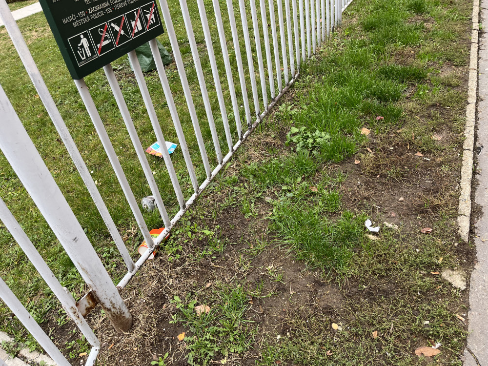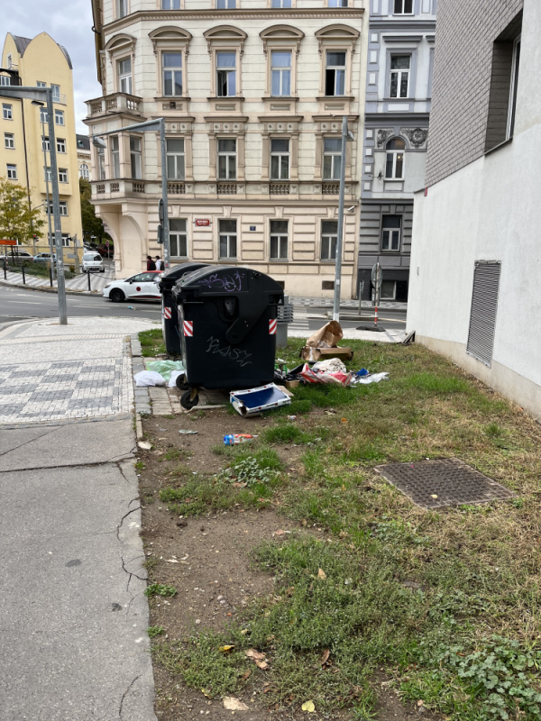 Dobry den, v ulici Jeseniova (pred skolkou - c.p. 4-6) se nachazi jiz treti den psi exkrementy a krome toho spousta odpadku a rozbite sklo nejen na chodniku, ale i na silnici. Navic je naproti skolce kolem popelnic hromada neporadku, to same na detskem hristi naproti skolce. Kazdy den sem chodi do skolky 200 deti, ktere rozbite sklo, odpadky a exkrementy prekracuji! Tato situace je zde neustale a zhorsuje se..