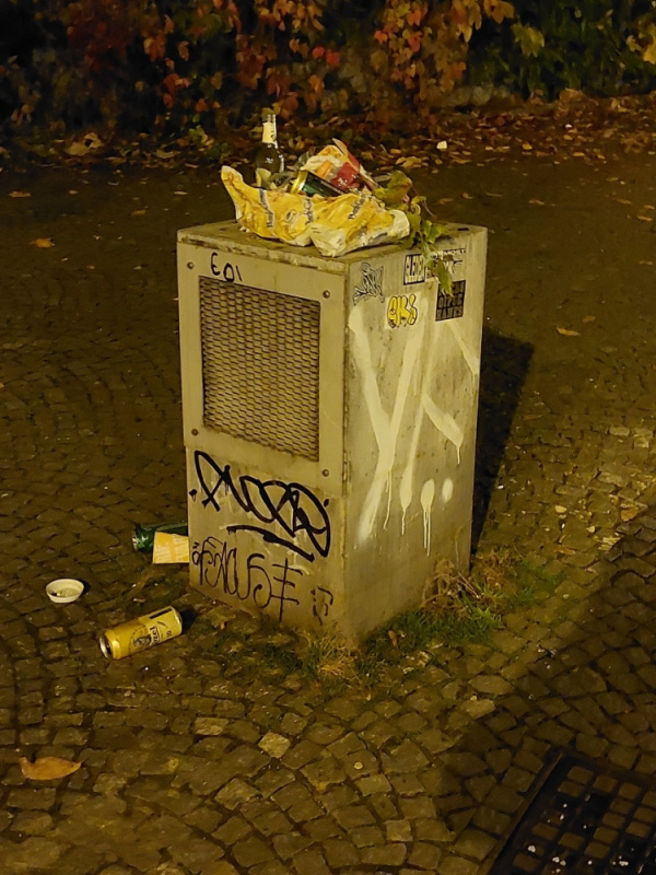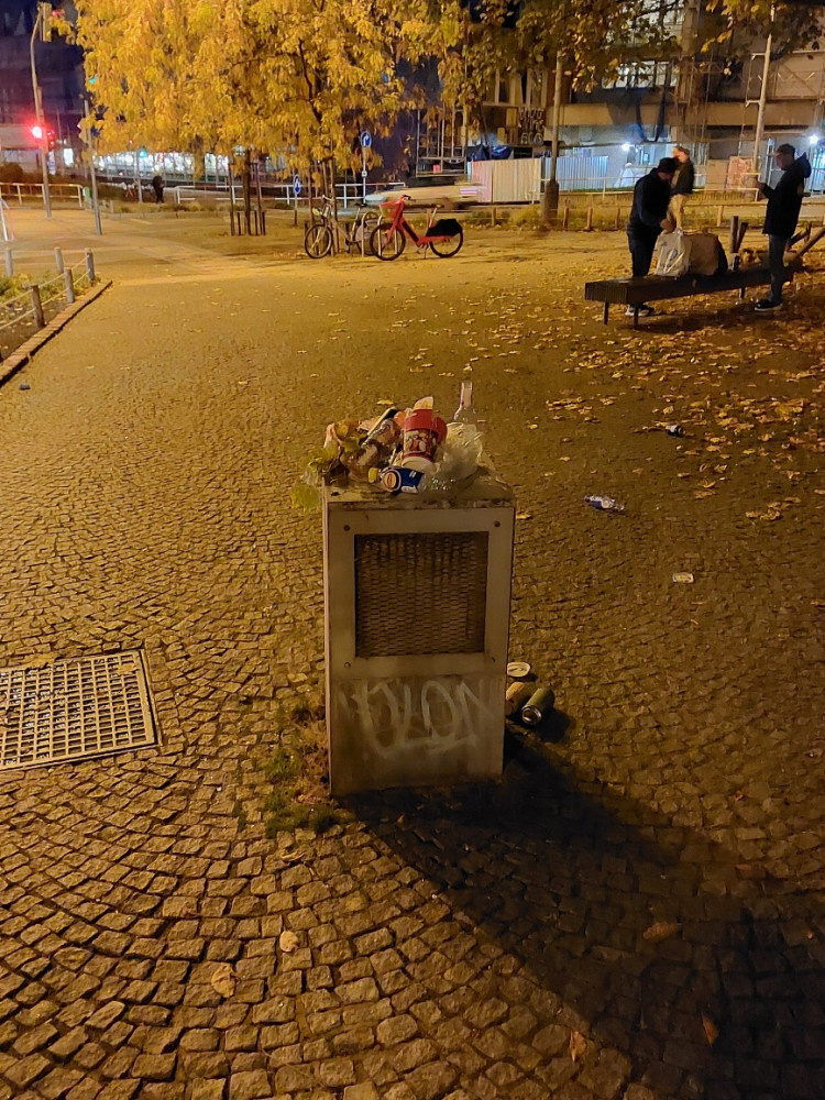 Plánuje se zde umisteni odpadového koše v blízkosti lavičky? Kde denne zůstávají odpadky na zemi jako plechovky, plastové lahve, obaly od jidla; cigaretove spacky, skleněné lahve a další.