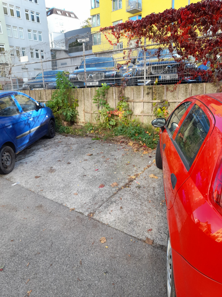 Jeseniova 41 nepořádek mezi autama a Jeseniova 37 vyhozený pytel.