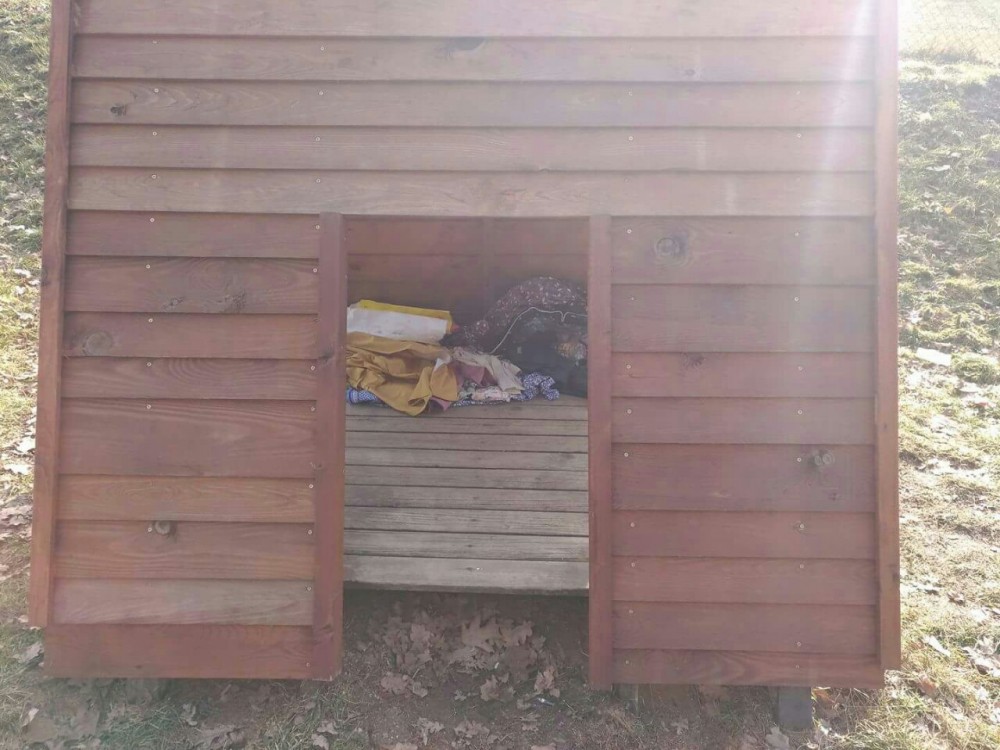 Na detskem hristi v kopci na Krejcarek pod bazenem na Prazacce se asi zabydleli bezdomovci :-( Vypada to hodne nehezky... :-(