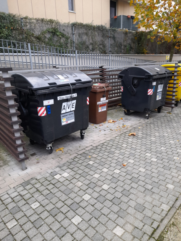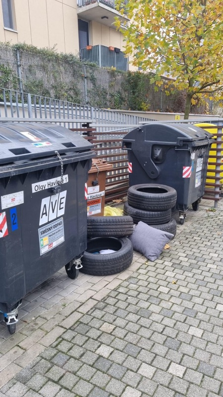 Pohozene pneumatiky u popelnic