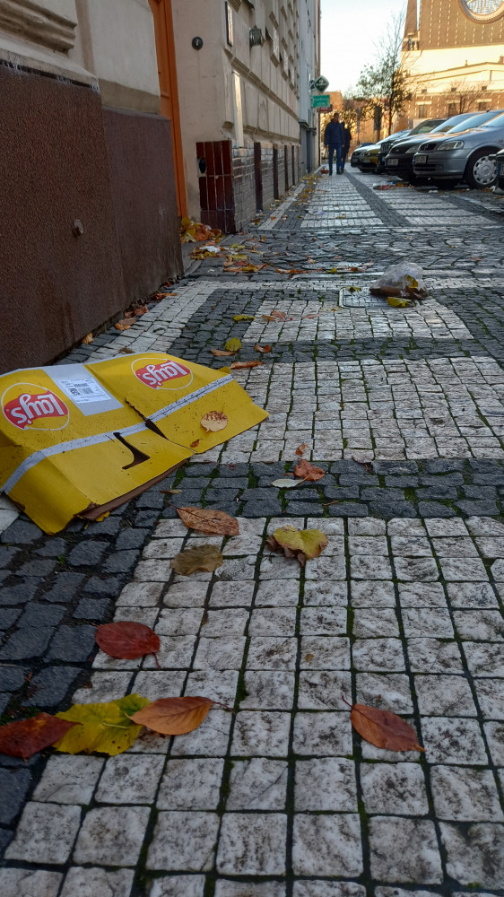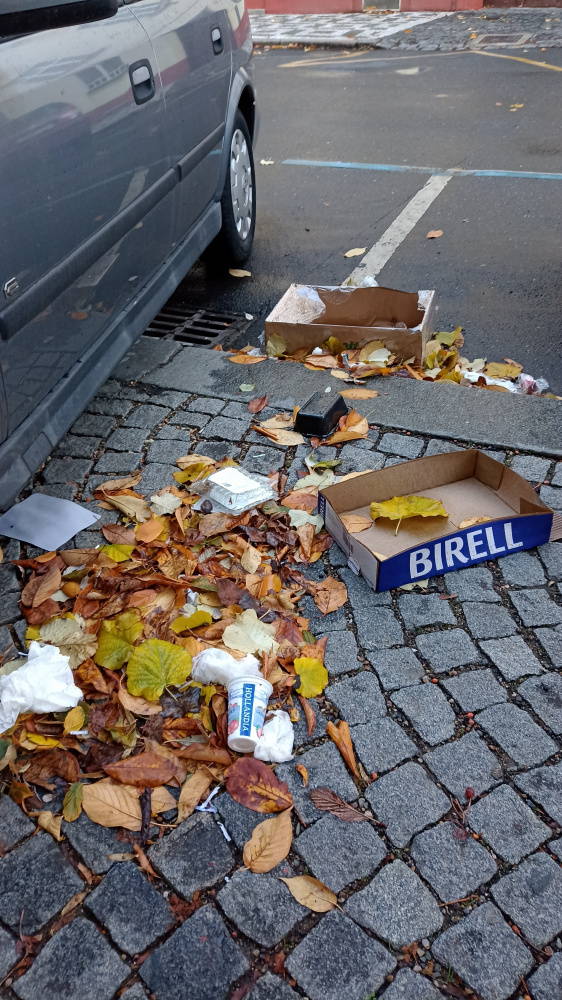 Rozfoukané odpadky v Přemyslovské ulici