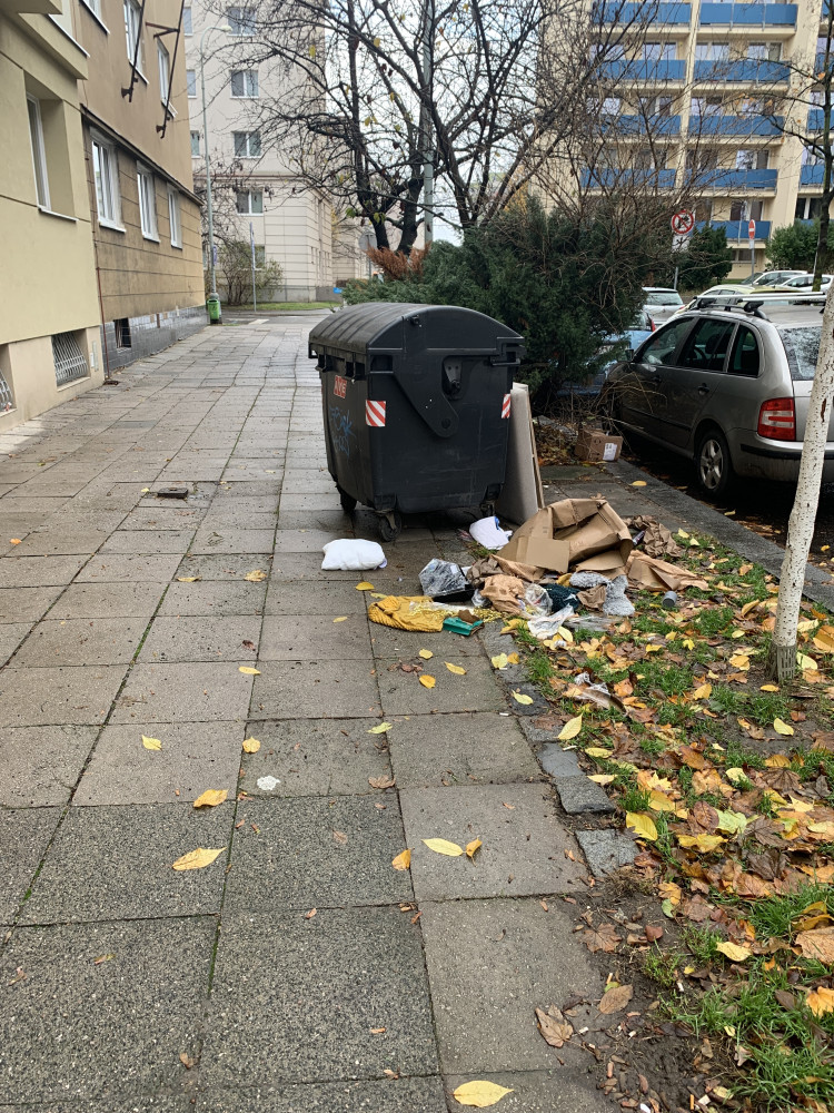 Neporadek vedle kontejneru. Dekuji za uklid