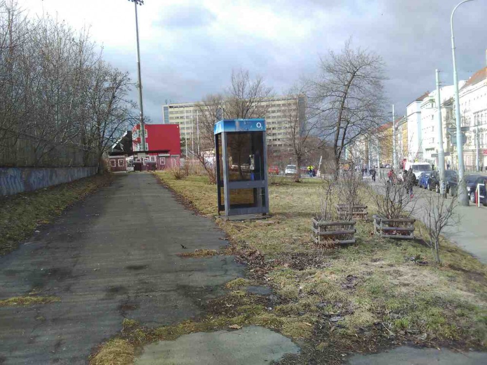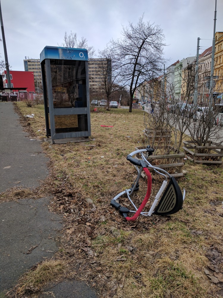 A taky si, prosím, všimnete tu „cyklistickou“ konstrukci vedle telefonní budky. Děkuji.