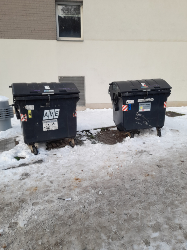 Smetiště u kontejnerů křižovatka Jeseniova/Roháčova
