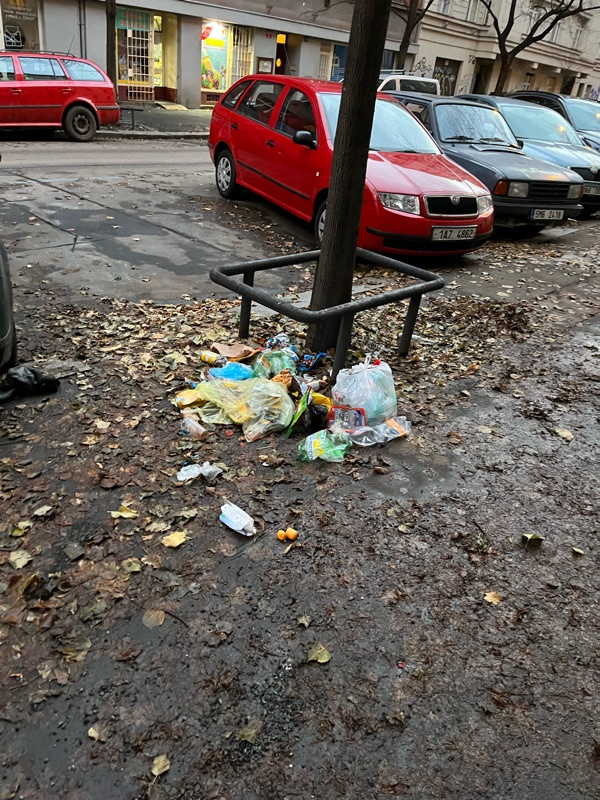 Dobry den, někdo vyhodil odpadky na ulici. Můžete to prosím uklidit. Děkuji