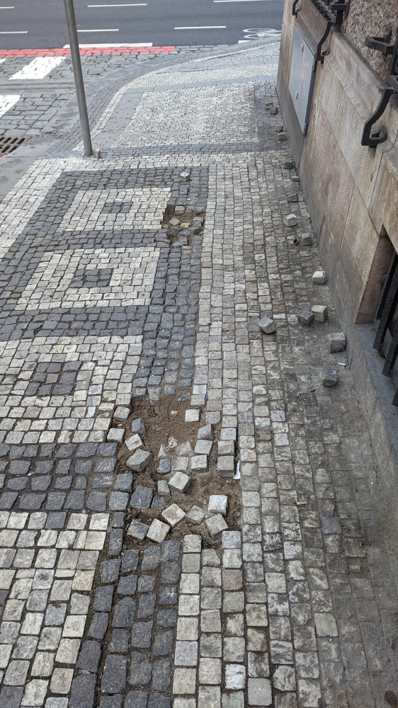 Otevřená dlažba - Tachovske n./Chlumova - začíná se to dost rozebírat, čím dříve oprava, tím méně práce.