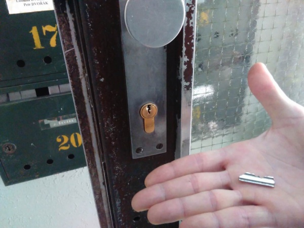 ostromečská 5 zlomený klíč v zámku u hlavních vstupních dveří do domu