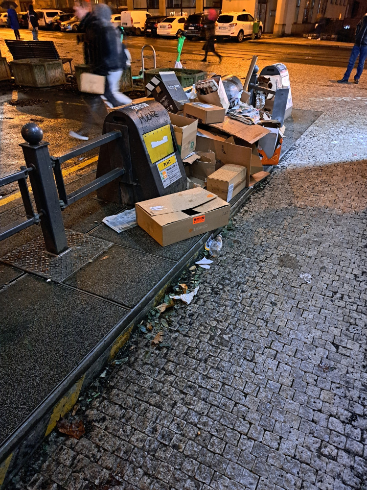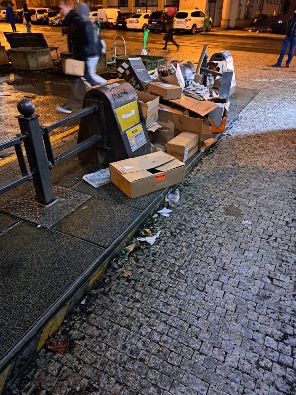 Neporadek kolem kontejneru na TO kriz Perunova x Korunni, odpad je navic rozfoukan po celem zapadnim chodniku prakticky az ke Slezske. :(