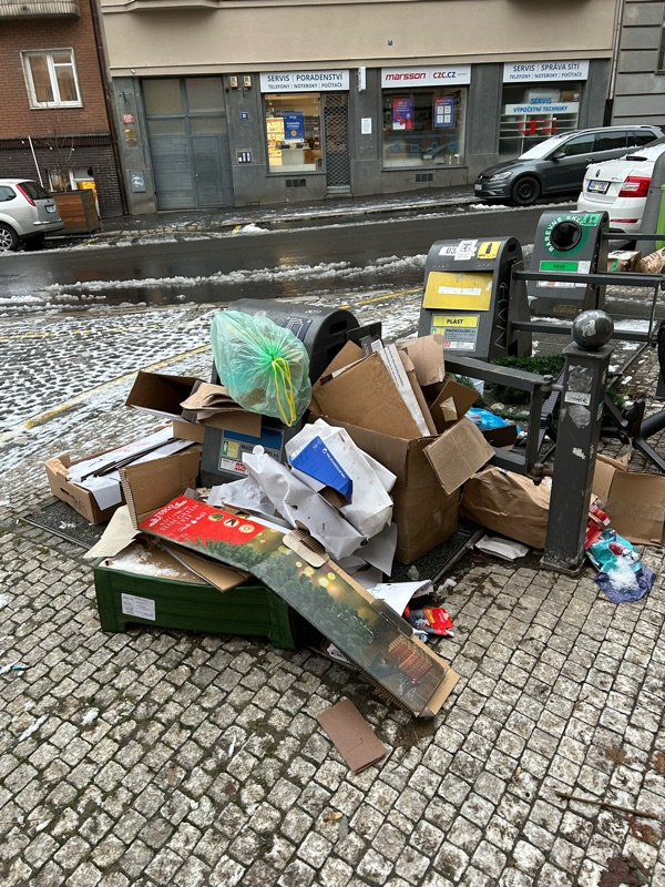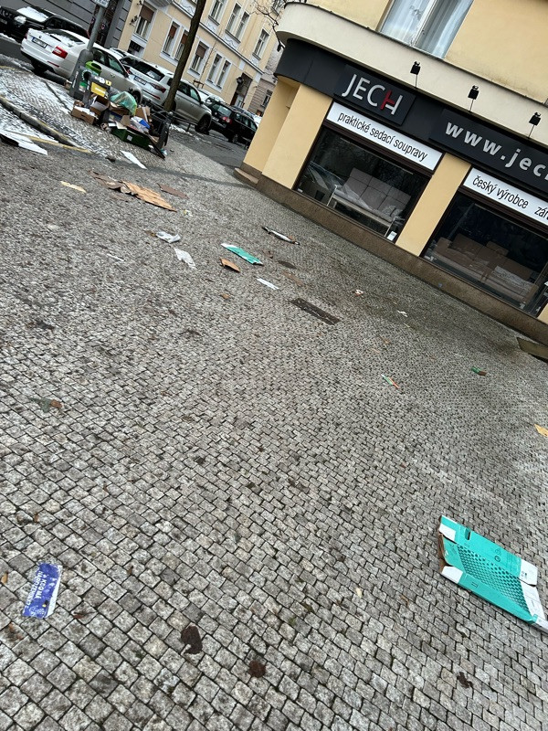 Prosím o uklid, odpadky jsou po cele ulici. Moc děkuji