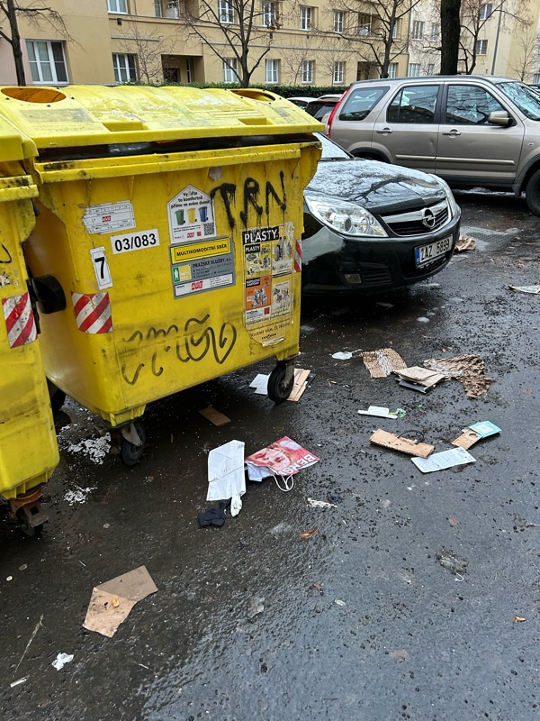 Kontejnery sice pravděpodobně dneska vyváží, ale bordel vedle a v ulicích zůstává. Prosím o řešení