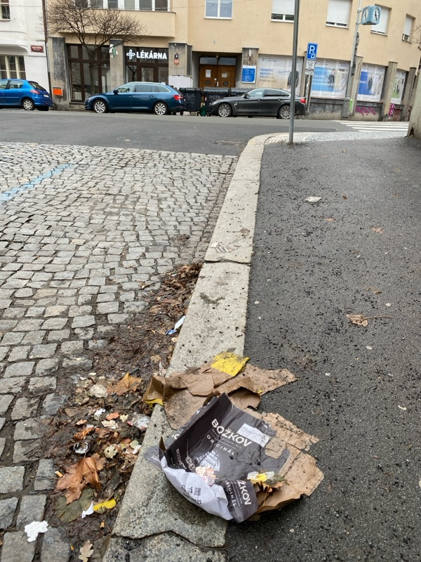 Zásadně zanedbaný úklid ulic. Ul. Krásova, ul. Křížkovského, ul. Bořivojova. Odpadky všude .