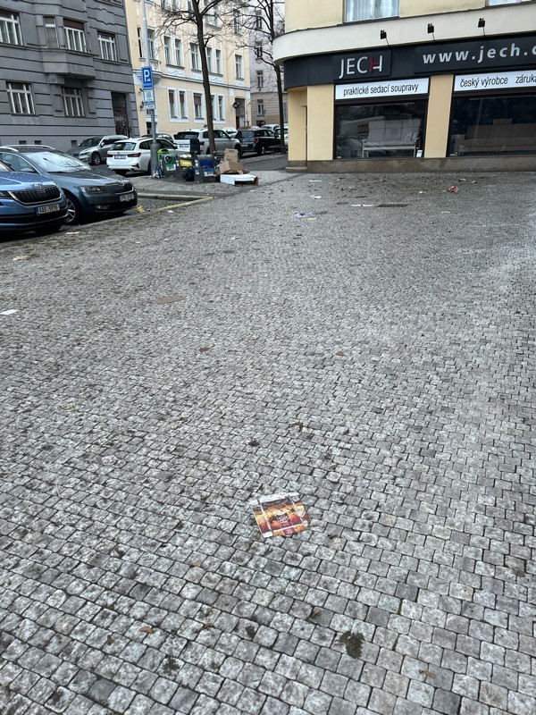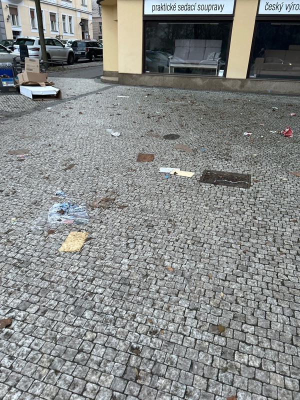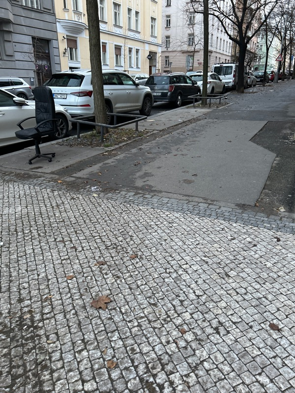 Opět nepořádek v ulici a židle tu stále je. Celkove je problém ve všech ulicích, všechny kontejnery na tříděný odpad jsou přeplněné a nepořádek všude. Každá ulice je nechutna a pokud někdo viděl poslední dobou Riegrovi sady kde to je taky zaneseny odpadem je to fakt hnus.