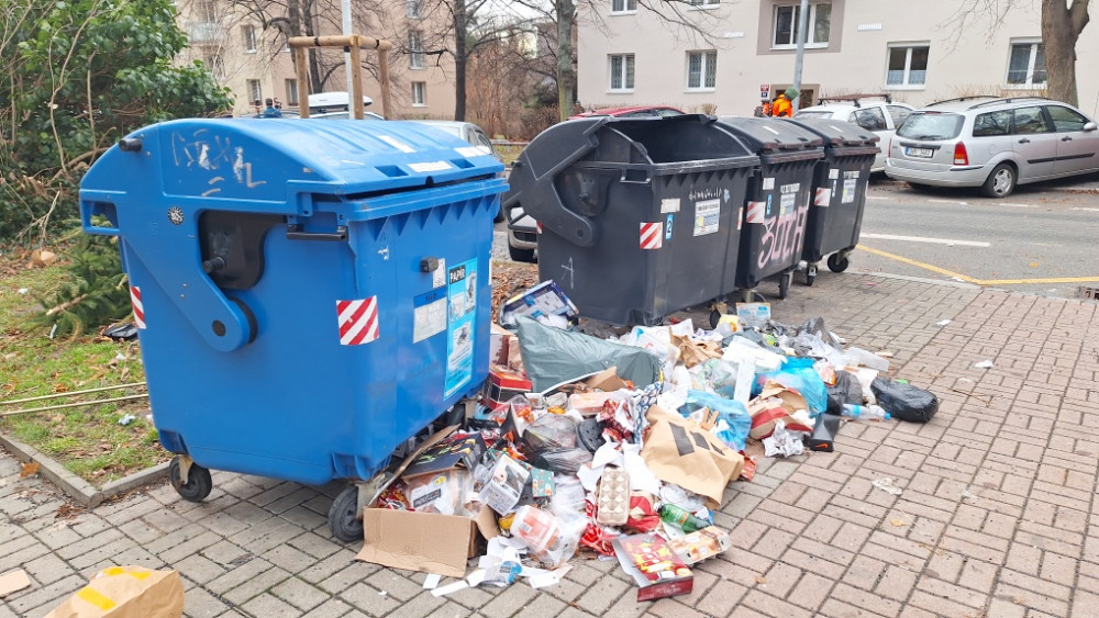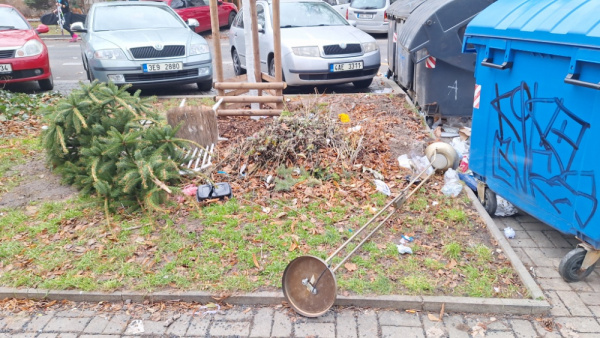Dobrý den. Prosím o úklid u popelnic. Díky.