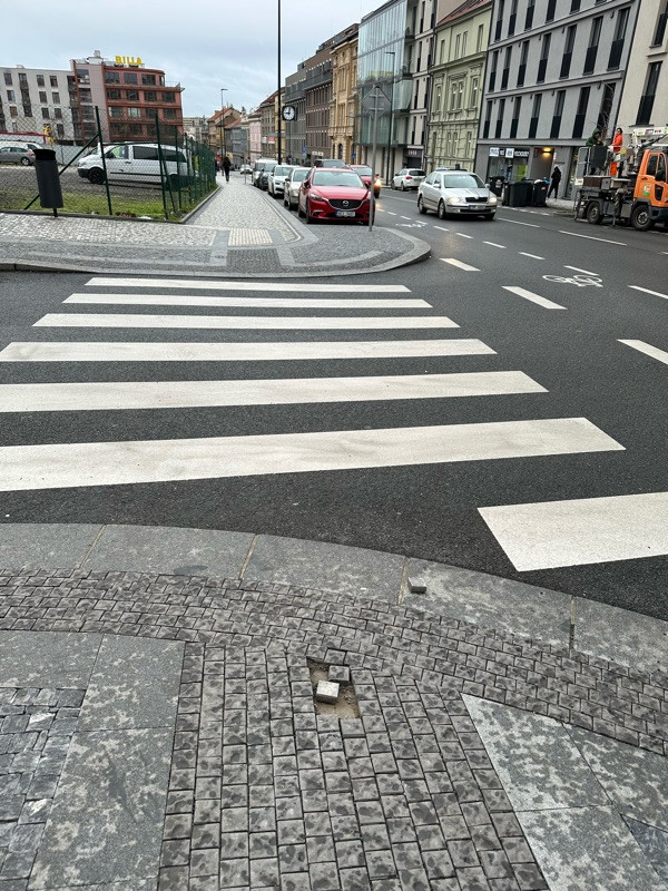 Poskozeny chodnik, roh ostromecsks/hartigova