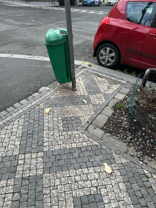 Ulica nie je čistená, pri koši sú niekoľko dní odpadky