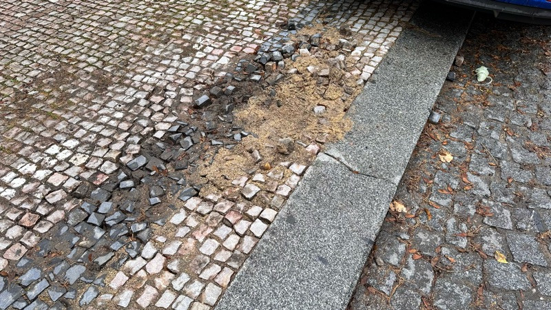 V ul. Strazni byla loni po nejake oprave znovu polozena dlazba. Parkujici auta ji nicmene po cele delce rychle rozjezdila.