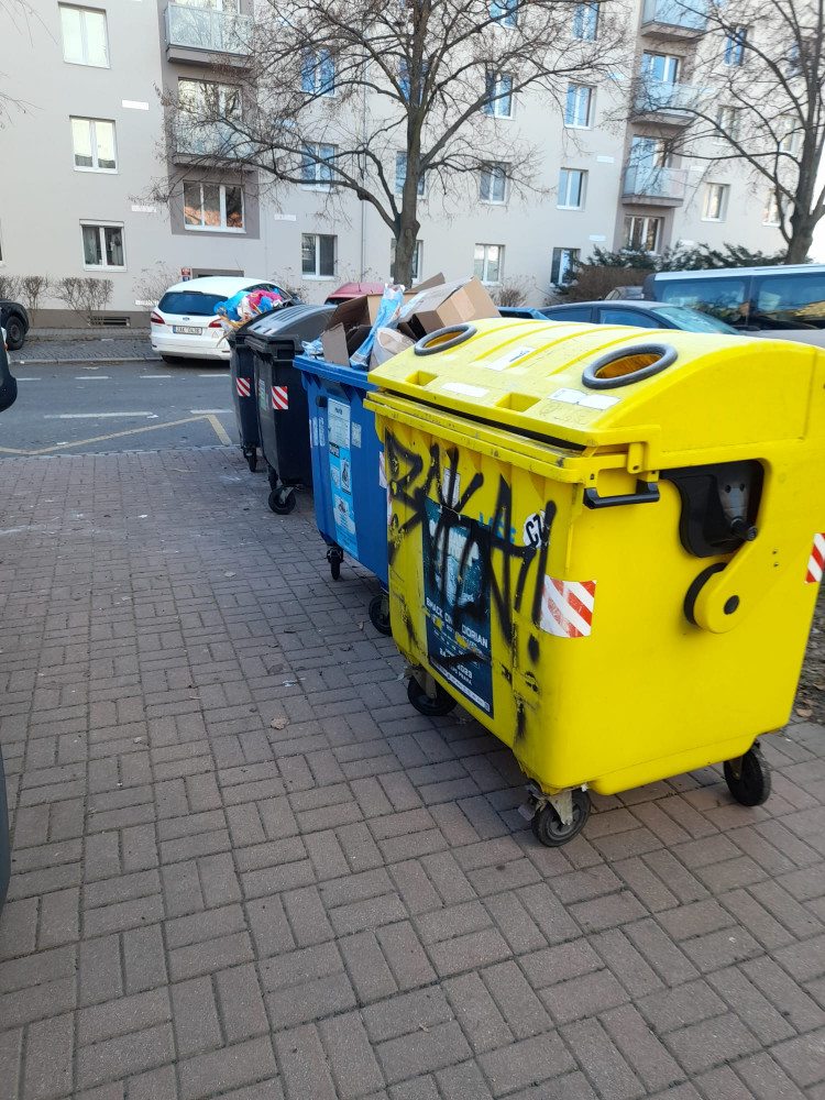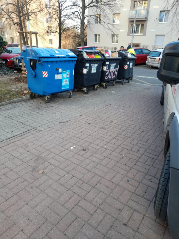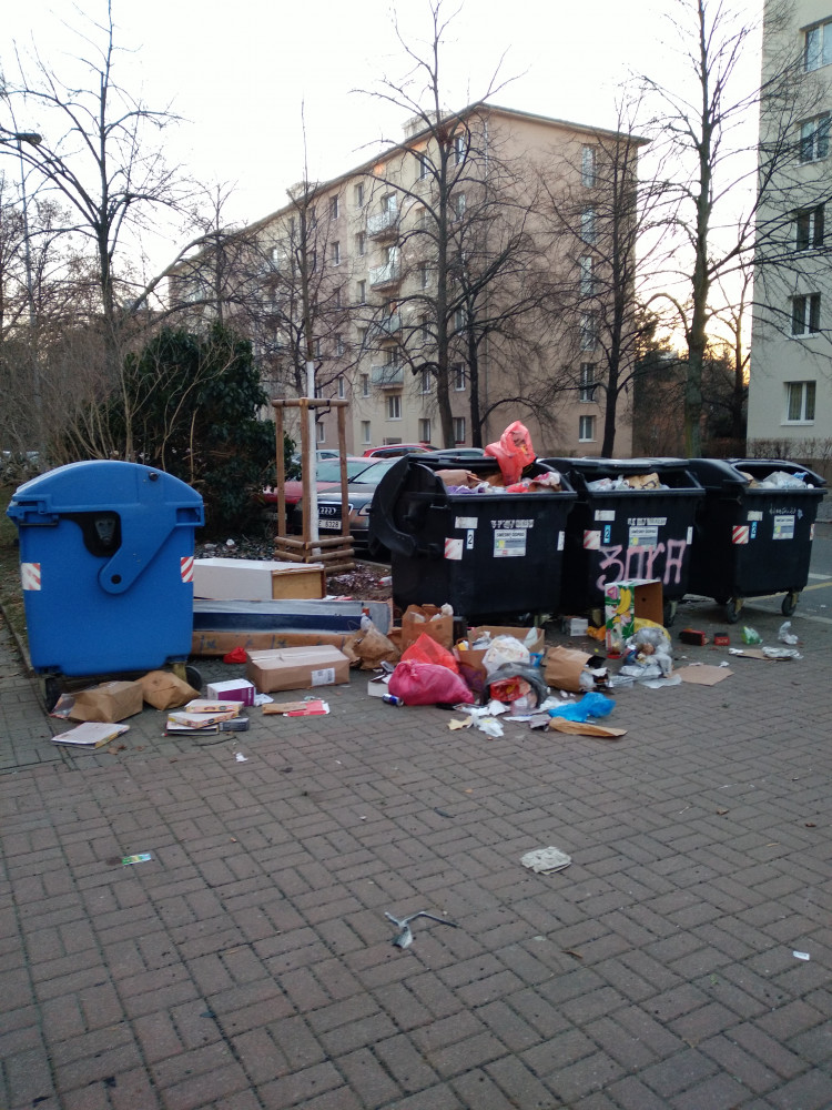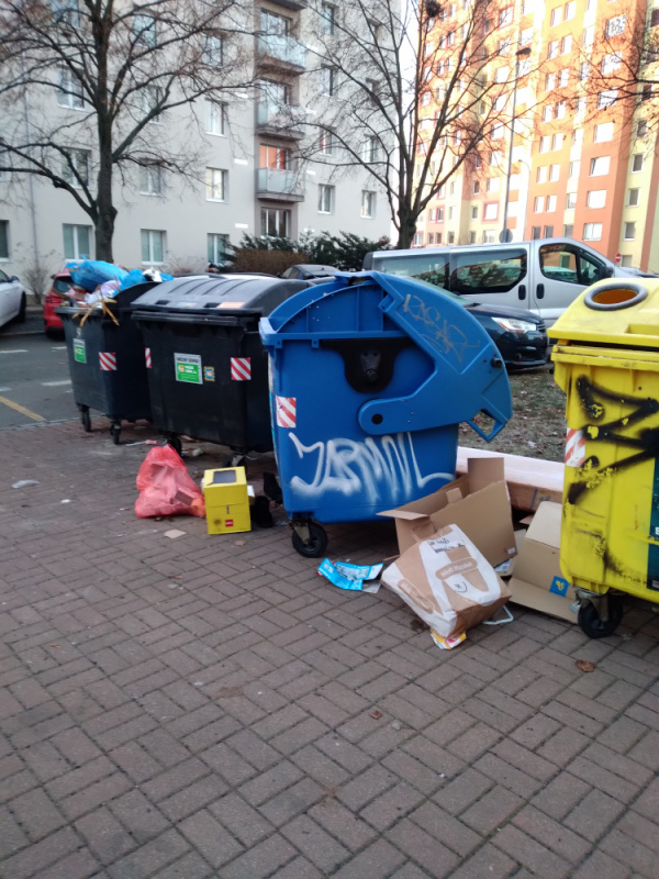 Velký nepořádek včetně nábytku kolem nádob. Prosím vyčistit celý prostor. Děkuji.