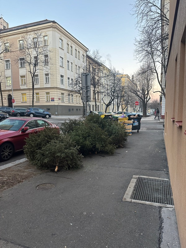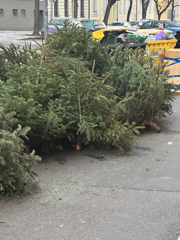 Podľa Vášho vyjadrenia majú byť stromčeky odvážené v pravidelných vývozoch odpadkov. To sa bohužiaľ nedeje! Poprosím Vás o upratanie, tých stromčekov tu máme už 6, na ulici zavadzajú. Zároveň je pod nimi neskutočný bordel, kto bude mať na starosti vyčistenie? Podľa pravidiel má upratovanie pri kontajneroch zaisťovať firma AVE, tá to však nerobí, naposledy nechali celý priestor pokrytý ihličím.