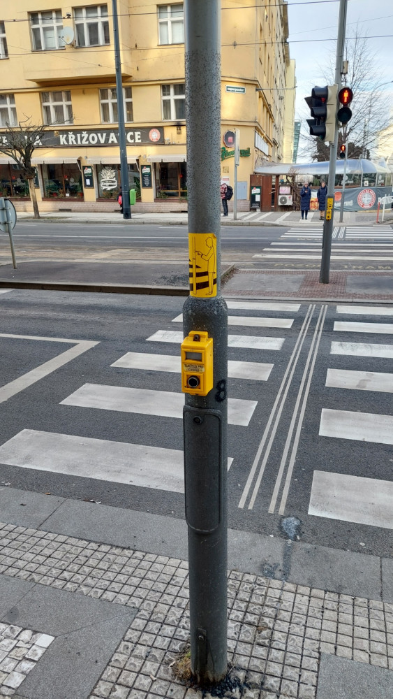 U semaforu pro chodce (semafor u Lékárny směr Hospoda) není možné stisknout tlačítko pro chodce (přednostní přechod).