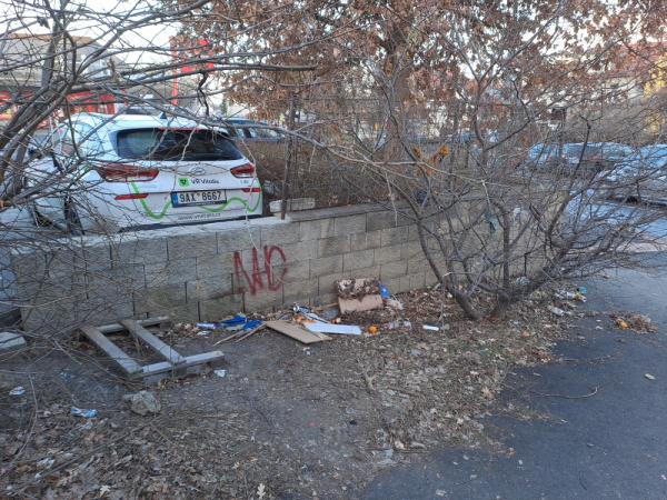 odpadky podél spojnice ulice Nad Kapličkou a Malešická jako u hlášení # 17749