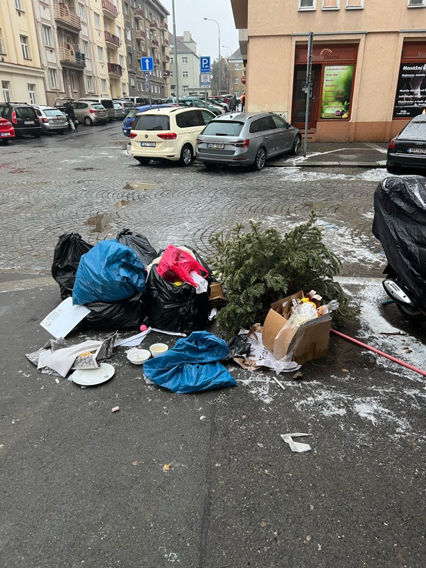 Dobrý den, již několik dní černá skládka na chodníku v křižovatce Viklefova / Biskupcova.