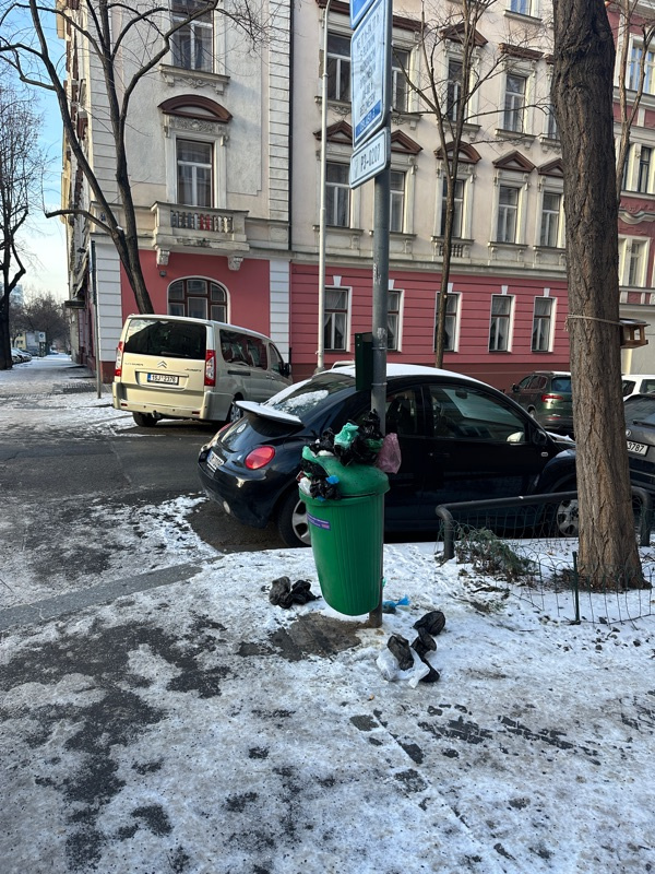 Opäť preplnený kontajner na exkrementy. Je to opakujúci sa jav. Pri väčšom vetre máme exkrementy rozfúkané po ulici.