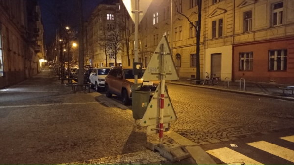 Na křižovatce Zelenky-Hajského x Hartigova se již několik týdnů nachází zapomenutá přenosná DZ.