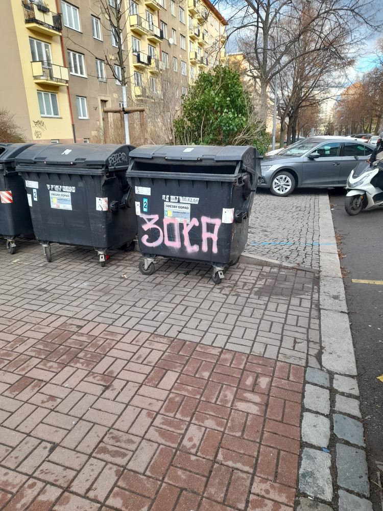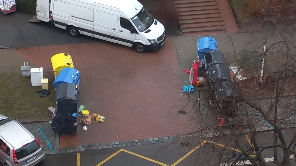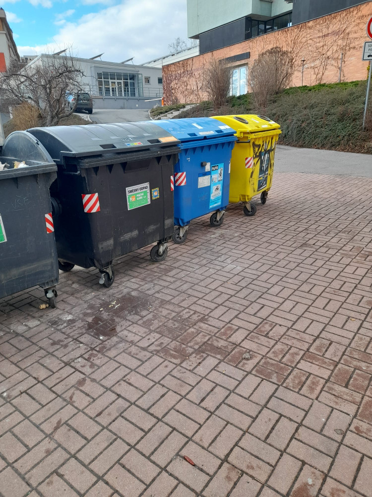 Nepořádek kolem kontejnerů na odpad, černá skládka, vyhozené velké předměty: Před kolejemi, Pod Lipami 43.