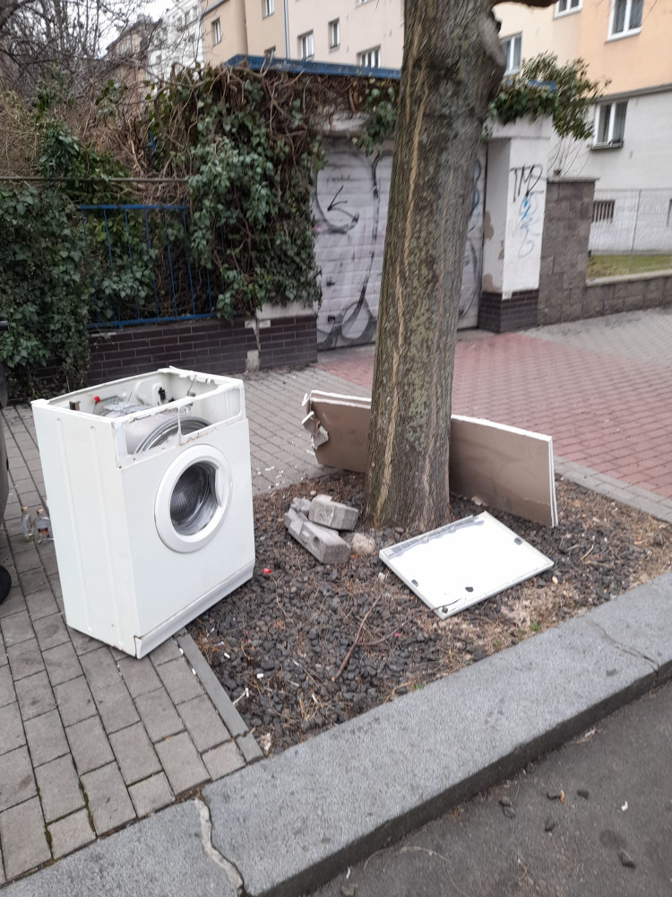 pračka na chodníku