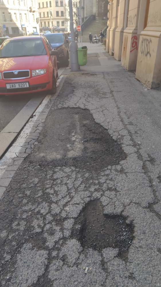 Chodník v ulici Vlková před gymnáziem Sladkovského je opravdu příšerný.