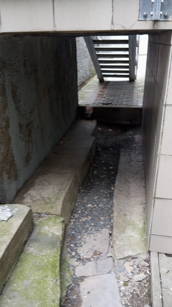 krabice pod schody polikliniky Olšanská z ulice Pitterova