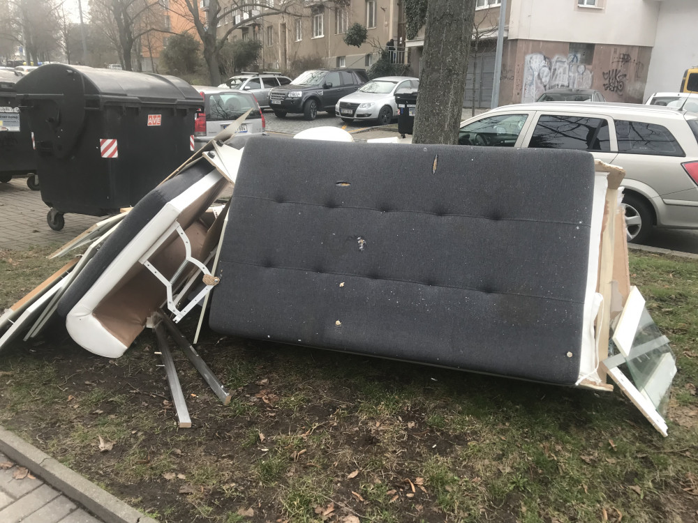 Vyhozený nábytek od prasat na kraji ulice Pod lipami Praha 3, hlavně nechápu, že to nikdo neviděl