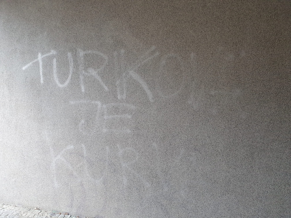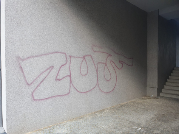Graffiti na v průchodu domů Blahoslavova 4 a 6.