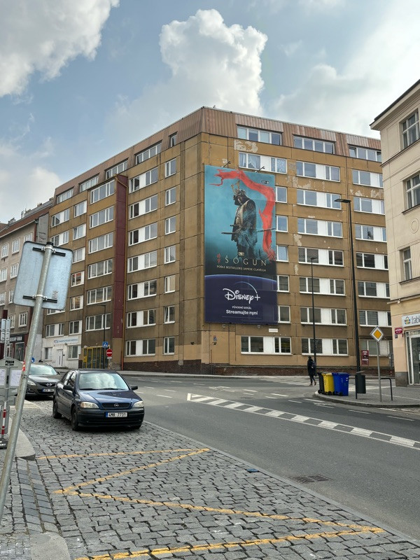 Reklamní plachta přes okna je zakázaná, nemá tam co dělat.