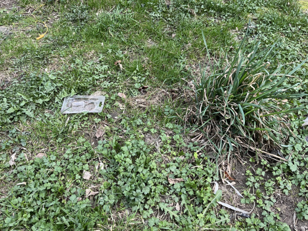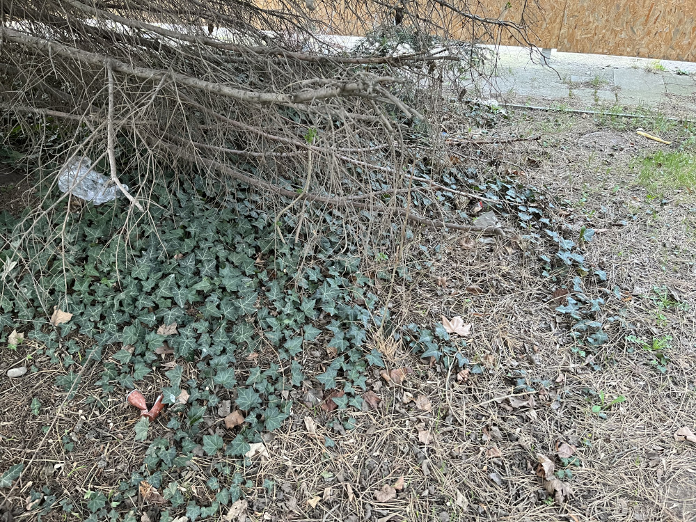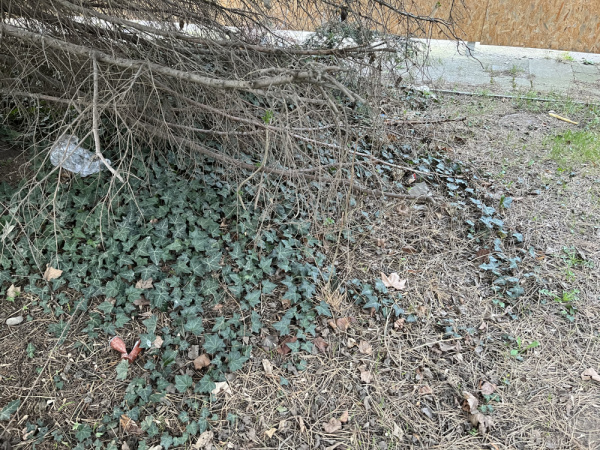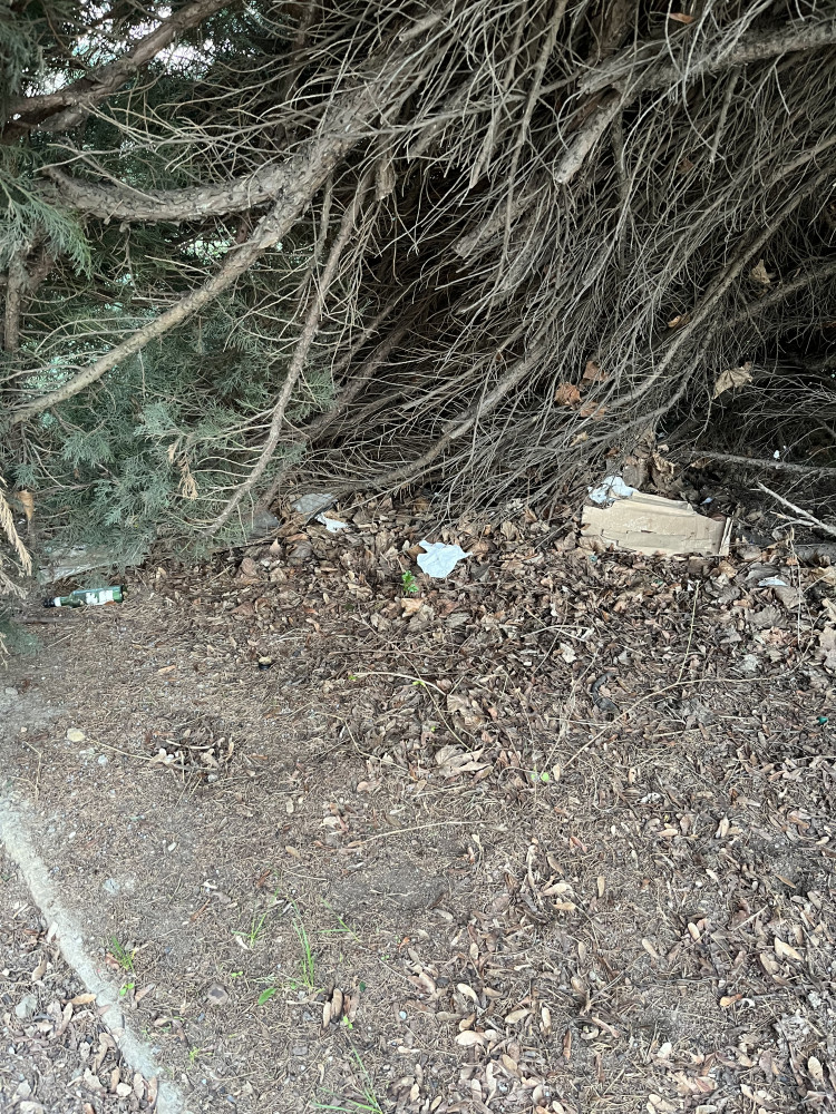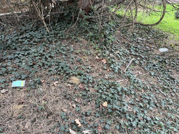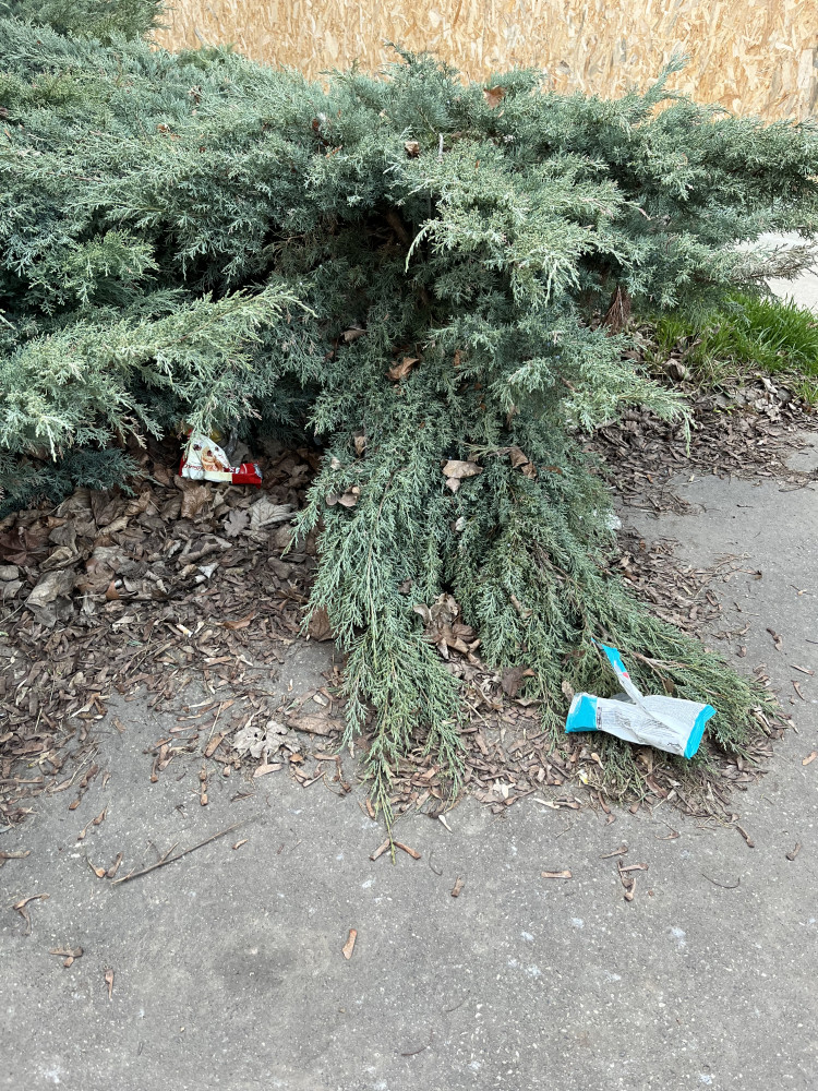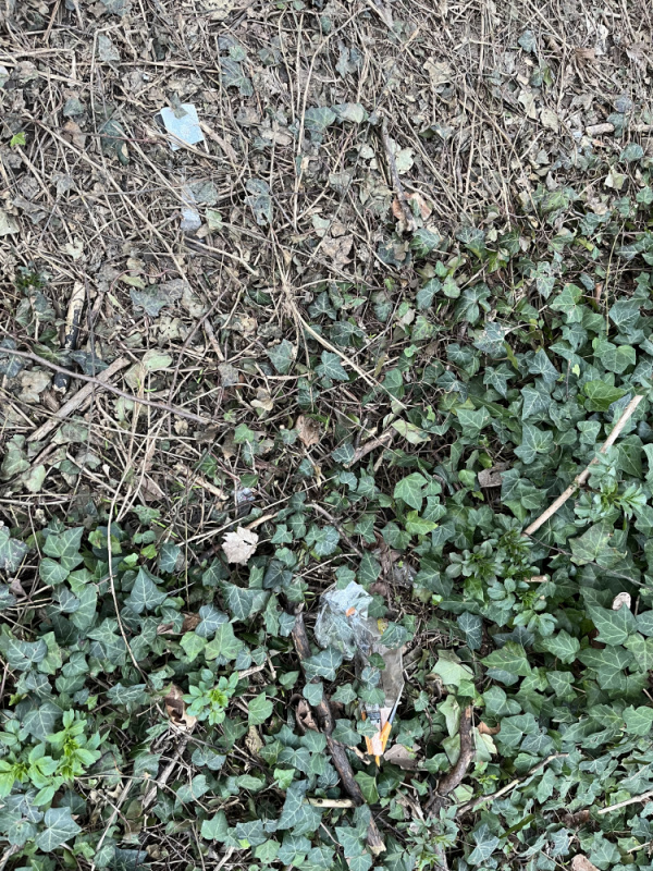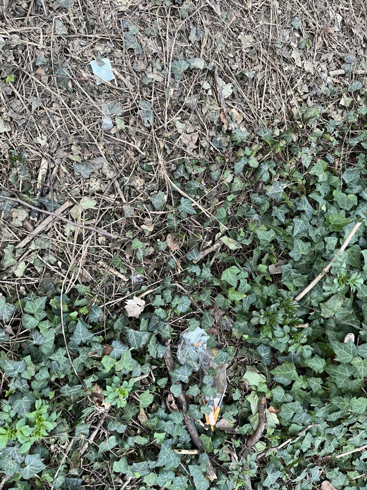 Odpadky po celé zatravněné ploše a ve křoví