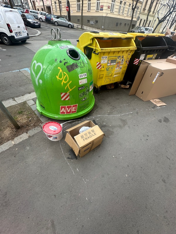 Konštantný problém s odpadkami - pokračovanie 24 Okolo kontajnerov je vyliata farba na maľovanie. Naozaj je potrebné dôkladné vyčistenie, môžu ju olízať zvieratá.
