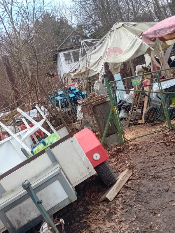 Černá skládka před zahradou i v zahrade v zahrádkářské kolonii Na Balkáně ZO 53