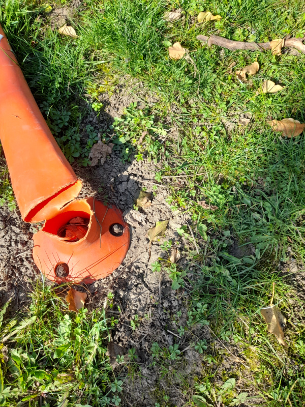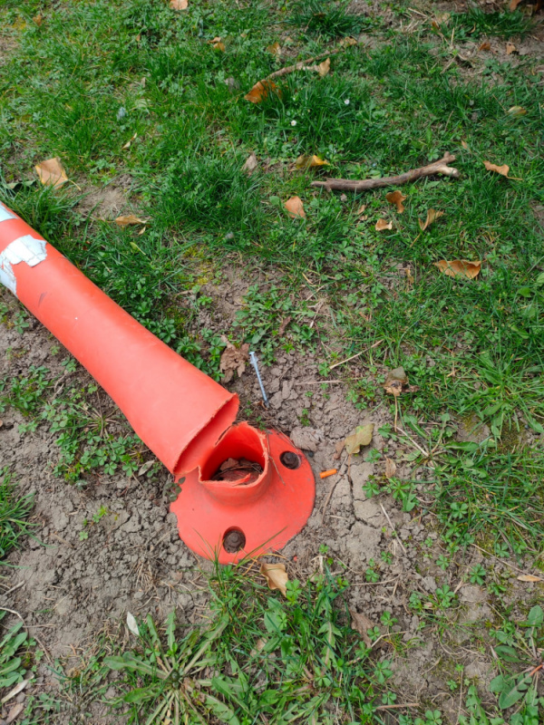 Injekční stříkačka - ulice Na Třebešíně a K Červenému dvoru, u poraženého sloupku viz foto (u tenisového kurtu). Volána Městská policie, detailně popsáno, po x hodinách stříkačka stále na místě. Děkujeme