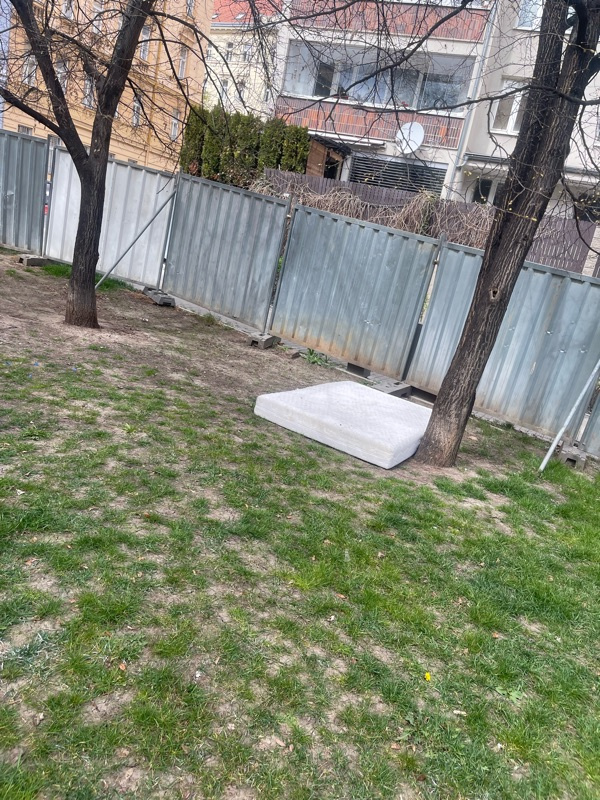 Již druhý den se na trávníku vyskytuje tato matrace, na které již druhý večer někdo spí. Moc prosím o odstranění.