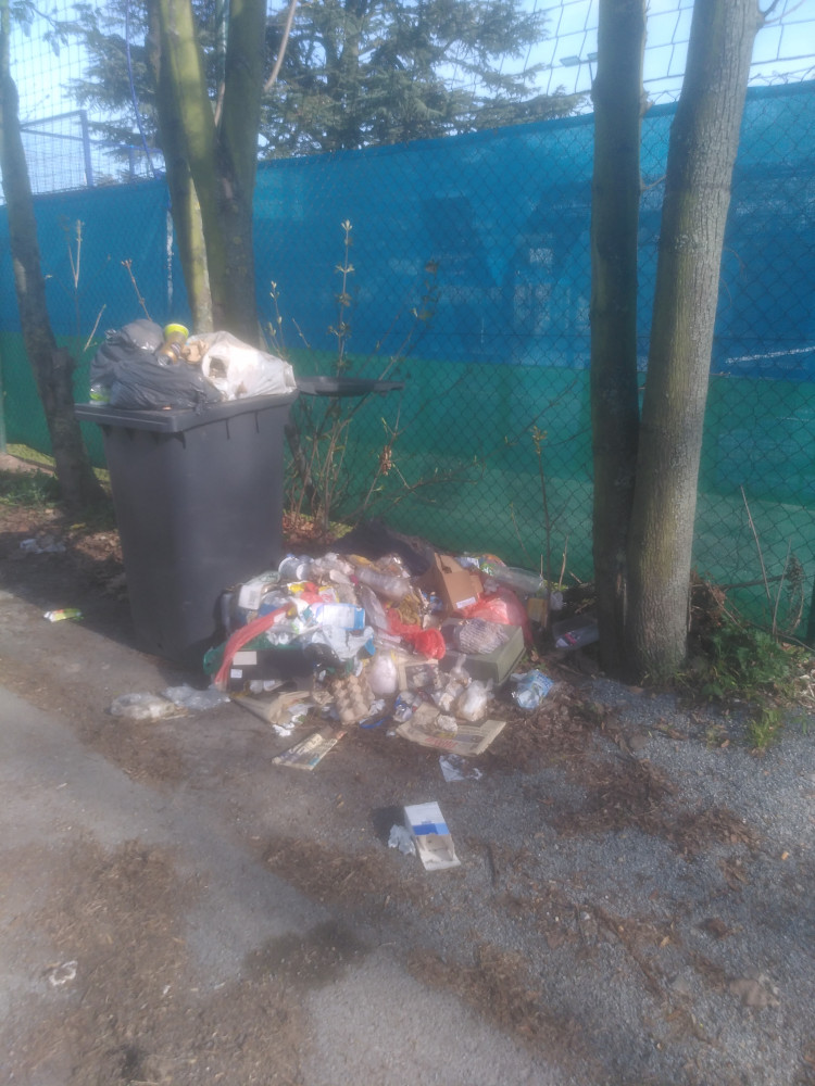 Opakované nepořádek u popelnice u zahrádkářské kolonie.