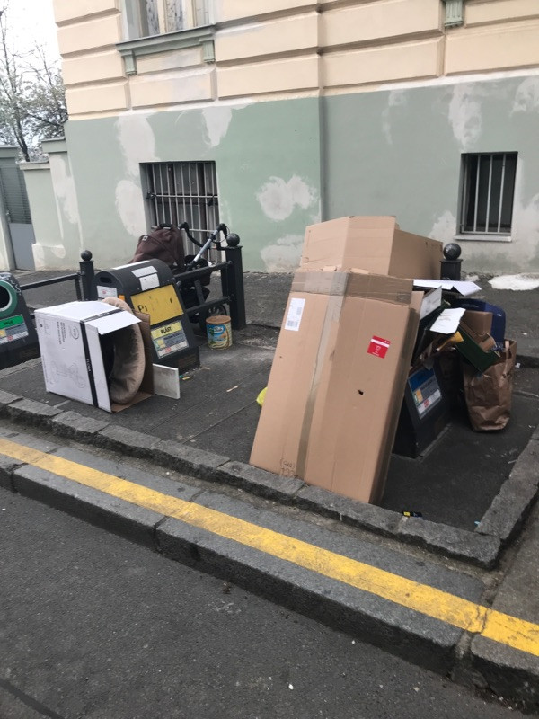 Nepořádek kolem třídenního odpadu, natolik že když fouká je to po celé ulici
