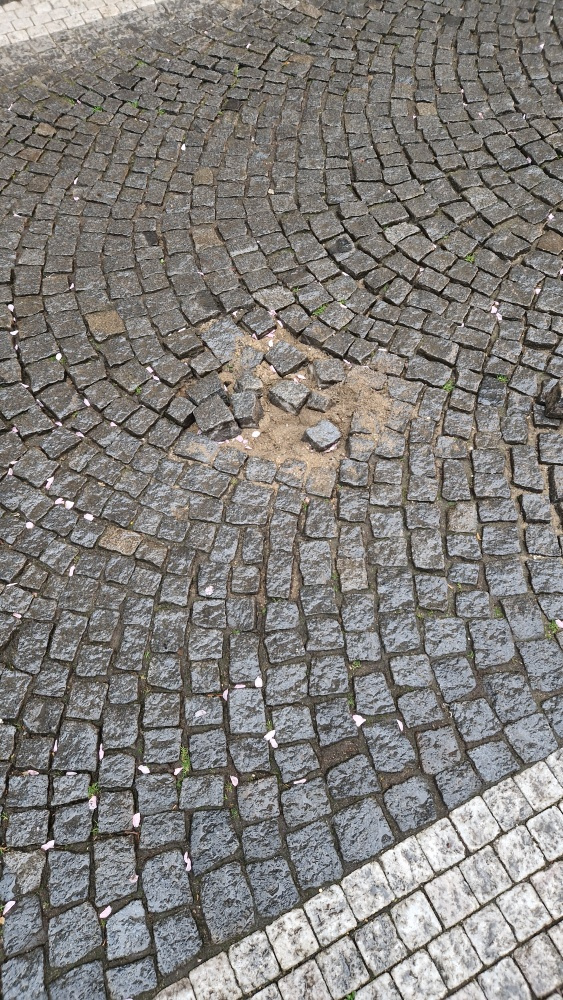 Ve Slavkově ulici je rada míst s vypadanymi dlažebními kostkami. Prosím o opravu.
