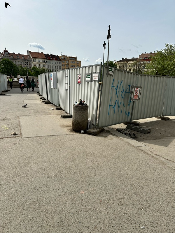 Na Jiraku u trhu jsou přeplněné kose. Vítr z nich rozhazuje odpad do okolí. Asi by se měli vyvážet častěji.